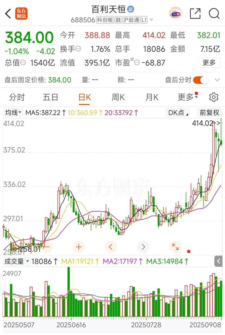 9月8日,四川上市公司百利天恒(688506)股价盘中再创新高,一度上涨近7%至414.02元/股。截至收盘,公司股价报收于384元/股,跌1.04%,总市值达1540亿。公司实控人朱义凭借持股74.35%,按当前市值估算,其所持股份价值约1173.99亿元,超越刘汉元、刘永好等川商大佬,成为四川新首富。